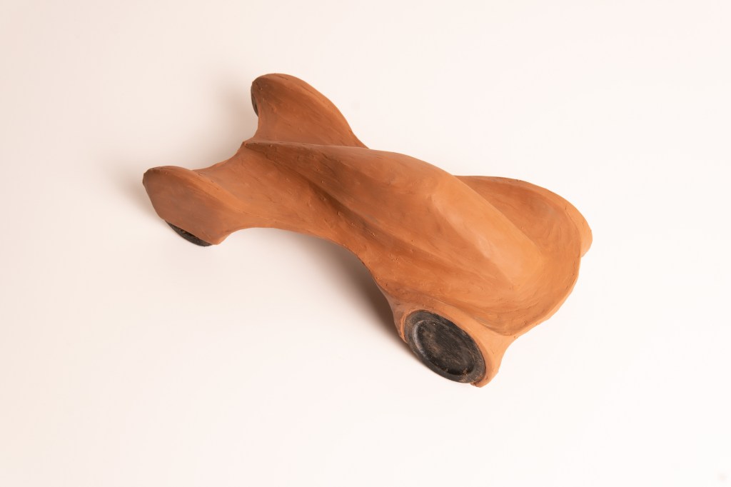 Right: Early clay model, based on general aerodynamic principles and the structure of the electric drivetrain. The rules of the competition set a number of constraints for dimensions etc.