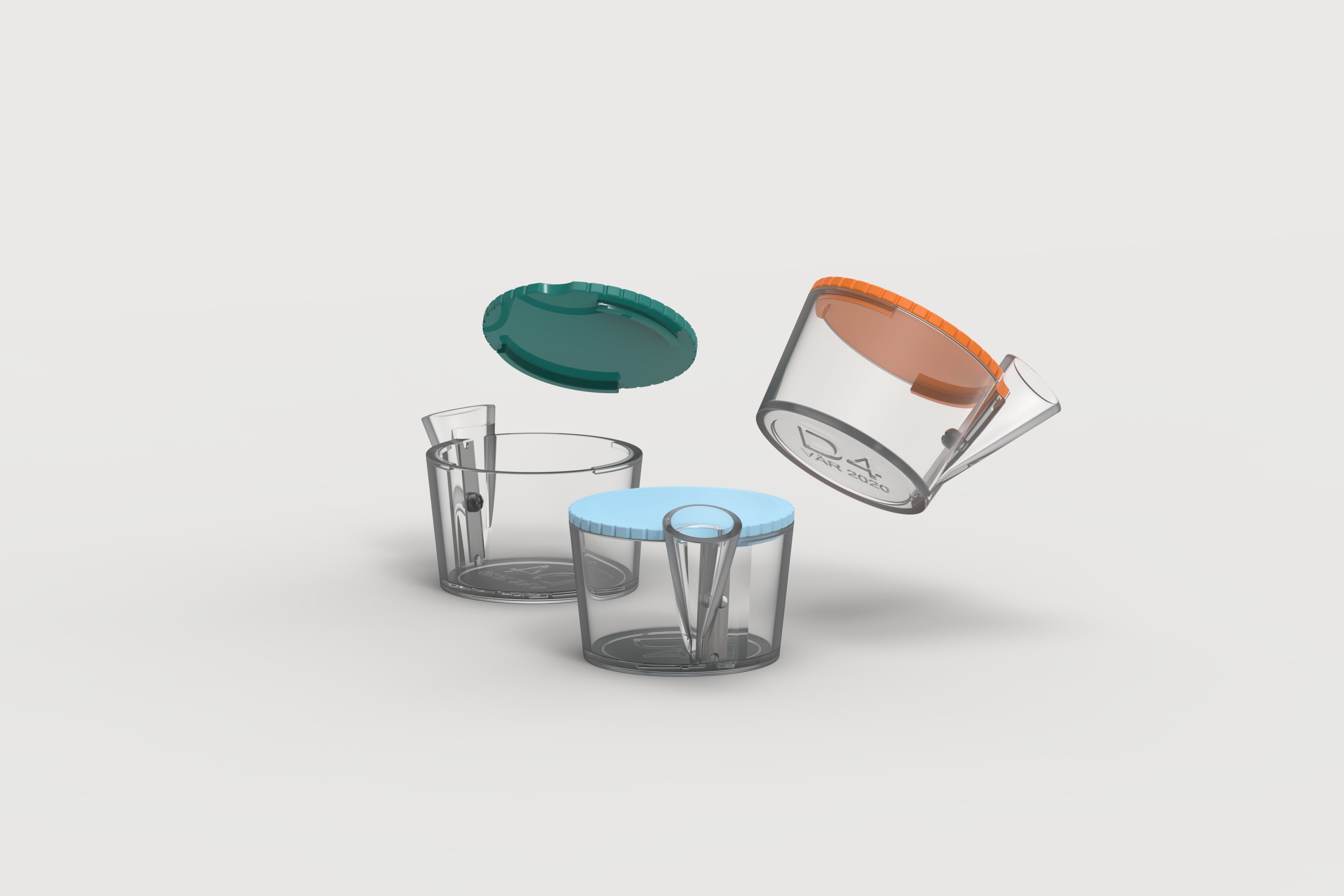 Pencil sharpener in two parts, designed for plastic injection molding. The shape mimics the geometry of the pencil and its rotation. 2020.